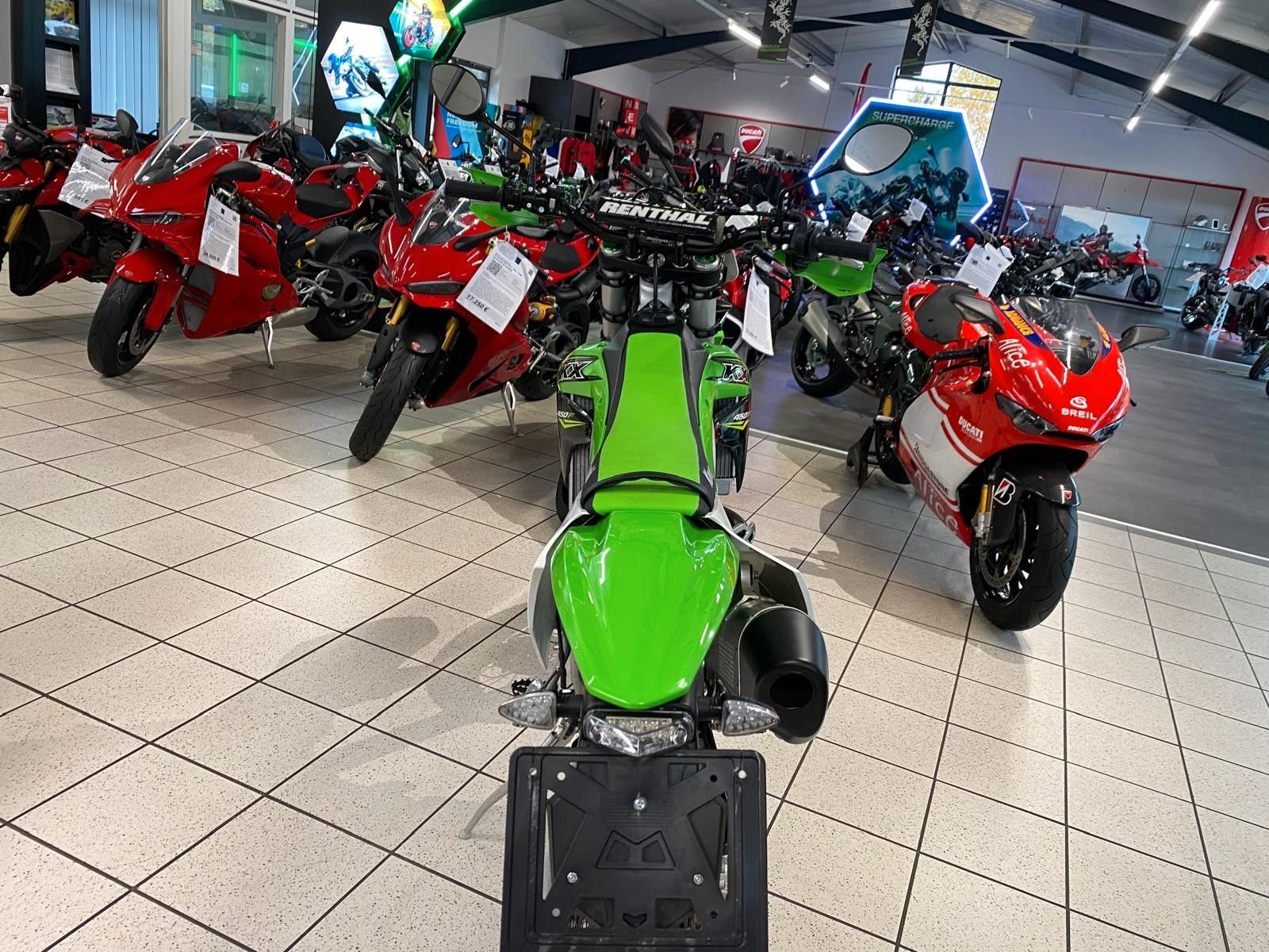 KAWASAKI KX 450 F aus 1. Hand (+TZ) mit Strassenzulassung / StVO-konform - Zulassung mit 9KW (12PS) , jetzt aber offen...für Kenner;) - vom KAWASAKI-Vertragshändler.