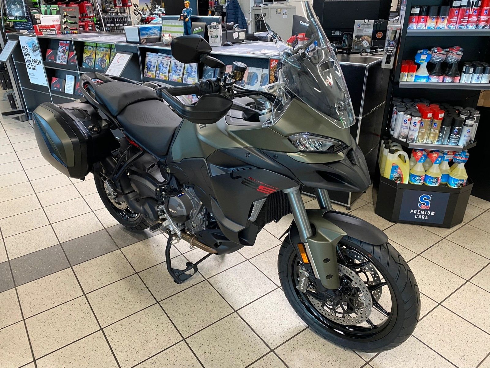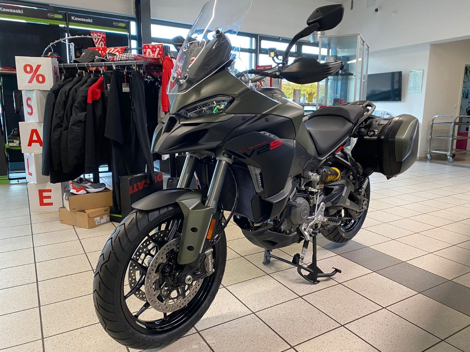 Die neue Ducati Multistrada V2 S Travel 2026 in der Farbe: Storm Green