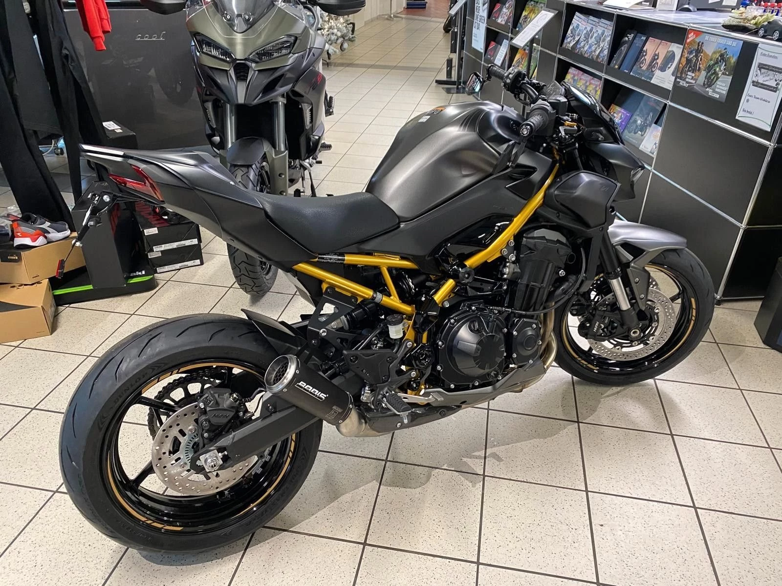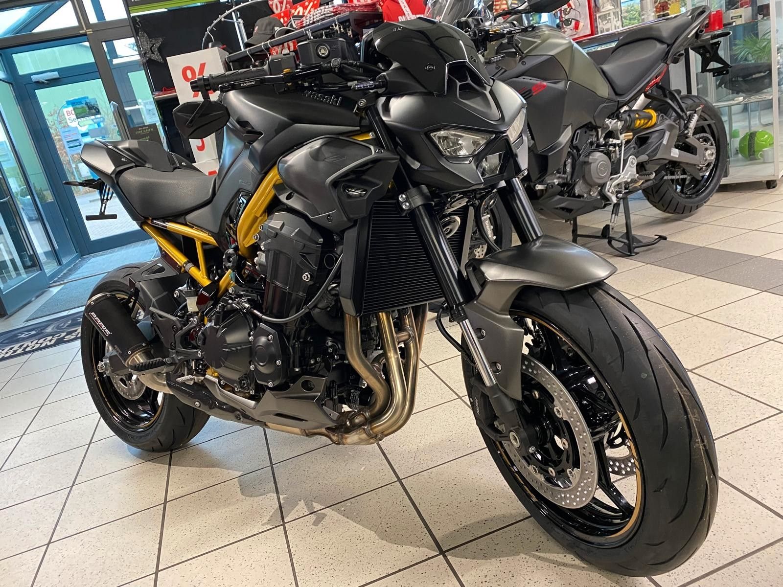 Die brandneue Z900 evolutioniert die Sugomi-Philisophie. Mit ihrem markanten, aggressiven Sugomi-Design, ihrer erstklassigen Ausstattung und der geballten Power des 948-cm-Motors setzt die Z900 ein Statement auf jeder Straße.